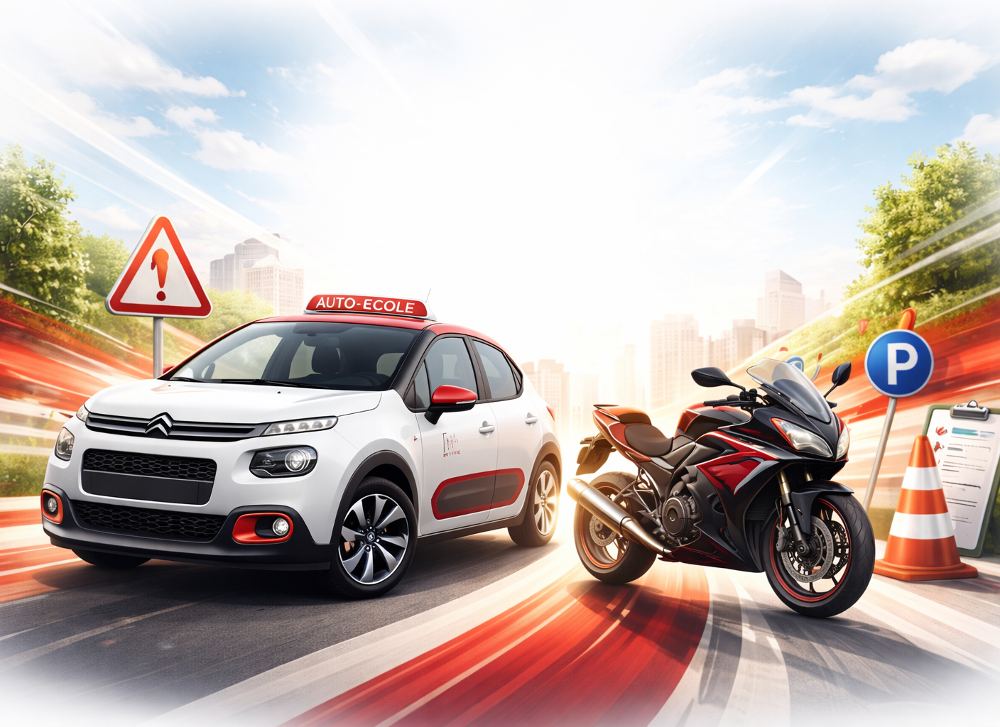 Notre parc est composé de plus de dix véhicules (auto, moto, scooter, 125), avec boîte manuelle ou automatique.